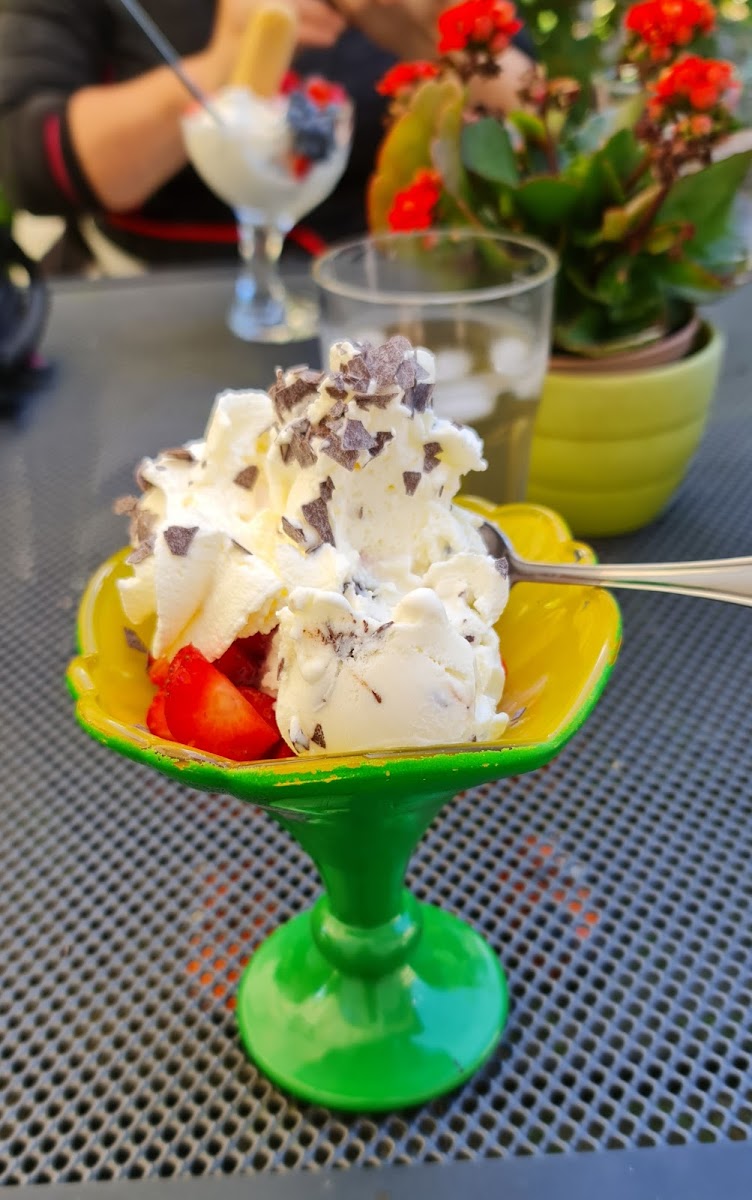 The cafe's layout is spacious, accommodating both larger groups and intimate gatherings – a feature that guenter hudy appreciates, noting the "herzlich, freundlich, [and] schnell" service. The glass veranda offers a refreshing view that allows you to sip on your Weinschorle while enjoying the vibrant surroundings of the quaint town. Parking is conveniently available, ensuring a hassle-free visit.